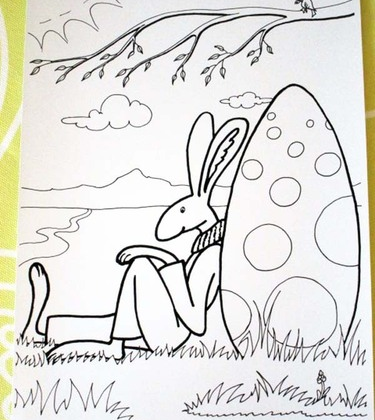 Bei dem Bild handelt es sich um eine schwarz - weiß Zeichnung mit Osterhasen-Motiv.